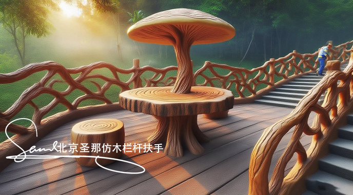 和天然树木一样的高仿真仿木栏杆,通过高仿真模具在工厂制成半成品,现场安装固定。