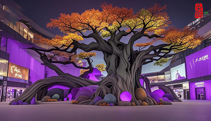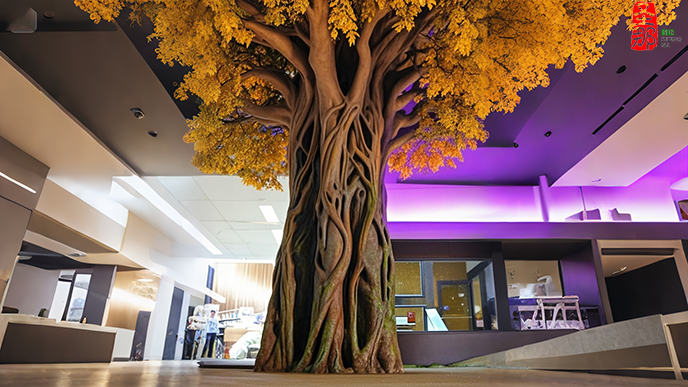 仿真榕树的树叶不要上很多,有的客户出于某种心理作用,要求把树叶上的很满,遮住树干,其实看不到树干,会让整棵树没有骨感,也就没有美感。