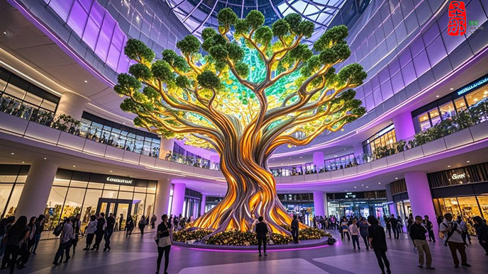 制作仿真榕树在仿其形时除了通常提前设计好树干的粗度、倾斜角度、树杈的粗度、树杈的数量等,为关键的是树干的倾斜角度和树杈的角度要一致,感觉树干和树杈是天然形成、浑然一体,现在的很多仿真榕树假就假在任何人一看,树杈是后来安上去的感觉,整棵树的树杈东奔西走,各奔东西,没有一点天然的整体感,所以制作仿真榕树主要的就是整体感觉,只有整体感觉做到了,仿真榕树得天然榕树的神就走出了步。