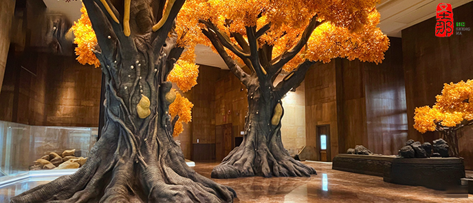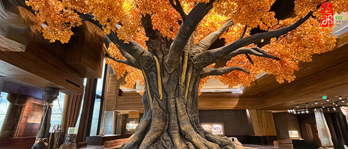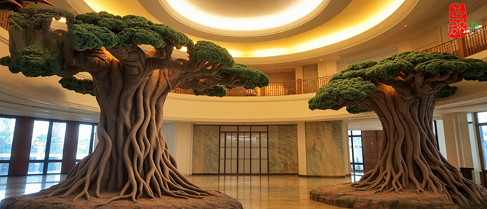 仿真树厂家的材料选择要注意材料的防腐性、收张性与树木本身的差异,主要有:木炭、玻璃纤维、聚氨酯复合物等。材料不能用易生虫、收缩性教大的材料。树洞也可以不全部填充完,但是一定要做好防虫、防腐措施。