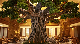 用多种工具,现在的专业塑石假山师傅有50种左右的塑石假山大树专用工具,用这些专用工具刻画出塑石假山的自然特征,如缝、孔、洞、烂、裂、断层、位移等的细部处理。塑石假山的大型要随意、洒脱,不一定像自然界的真实的山一样,但要有气势。塑石假山细微细节的刻画就要严谨细致像画画一样模仿真正的石头。