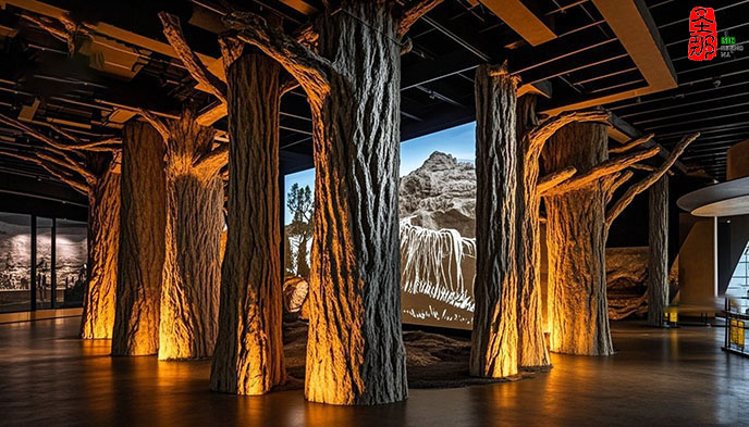 柱子变成仿真树制作步:用钢筋作出大树造型,然后用镀锌丝网绑扎。在用钢筋制作仿真树包柱子大型的时候,要有充分的设计,包括树杈的走向、粗细、长短等,还要和甲方充分沟通,树杈的位置好不要遮挡灯光,如果用树杈吊灯,那树杈的走向就要朝向需要灯光的地方。