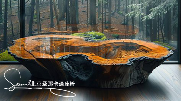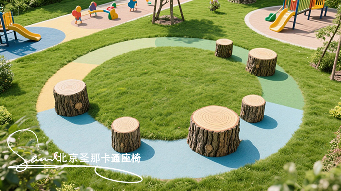 双半圆木水泥仿木坐凳使用舒适外观具美感
