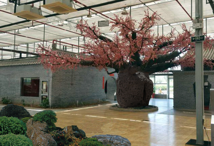 艺术来源于生活,就要造福于生活,仿真梅花树来自真实的梅花树,就要把真的梅花树的优点放大,去掉缺点,并把其他树的漂亮之处嫁接到仿真梅花树上来,下图到古桩仿真梅花树就是吸取了仿真古榆树到特点,用仿真古榆树到树杆搭配梅花树的树枝及梅花。