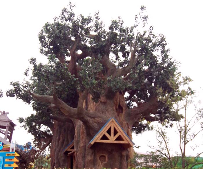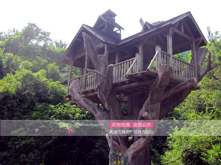 用水泥制作的仿真树屋具有用真树制作仿真树屋无法比拟的优点,先是使用寿命长,不损坏天然树种,而且坚固耐用,水泥制作的仿真树内部是用钢筋制作,还有角钢等钢材加强,不会像木材一样发生腐朽低现象。