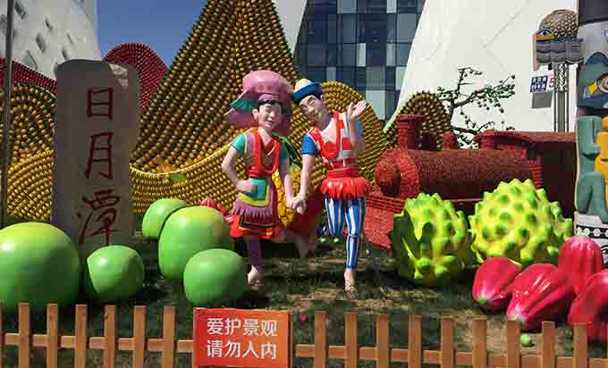 水泥雕塑的果实及用仿真果实或粮食粘贴出的大的仿真植物
