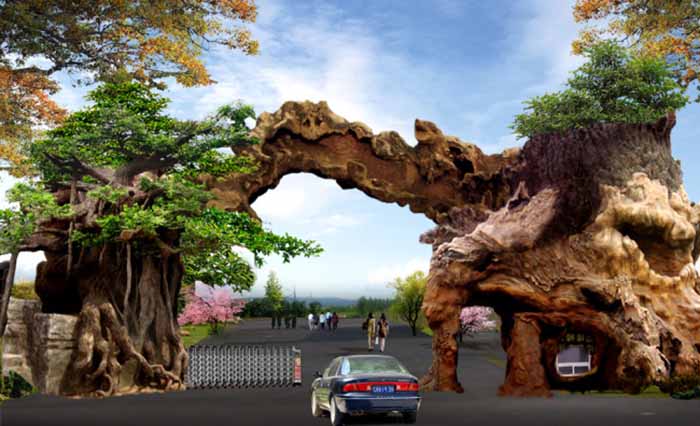 仿真树大门设计原则: 仿真树大门是游客进入景园的展示点,也是赋予游客直观感受的印象区,它不仅具有防御、标识、空间组织...