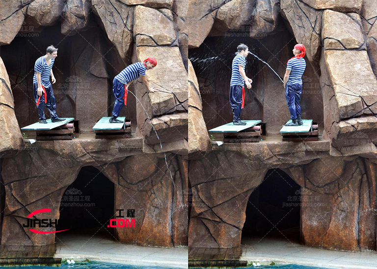 浅仿真假山起位较低,仿真假山形体压缩较大,平面感较强,越加大程度地接近于绘画形式。仿真假山主要不是靠实体性空间来营造空间效果,而越加多地利用自然的描绘手法或透视、错觉等处理方式来造成较抽象的压缩空间,这有利于加强仿真假山适合于载体的依附性。