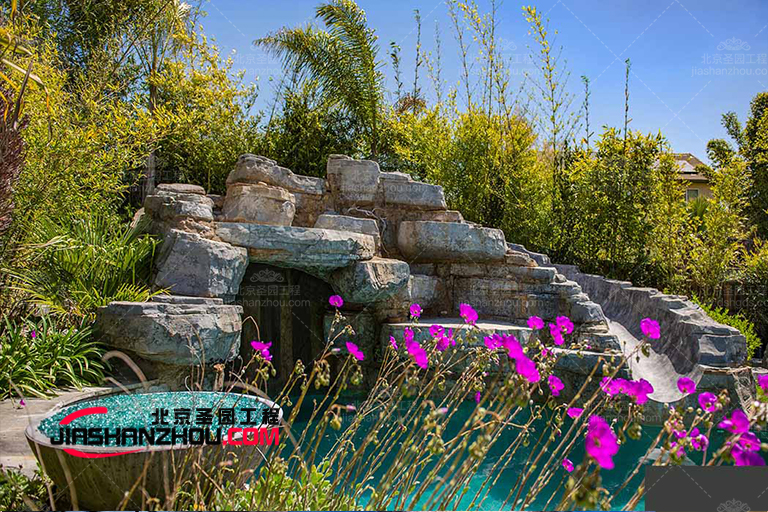 继续往前走,能看到仿真树搭配的青青草坪,在镜头下仿真树显得是那么的青葱可爱。用石头堆砌石板小路,并在其上支起一座个性的蓝色弧形门帘,大大提升家中室内外颜值。花园仿真树小品的设计让空间充满阳光,仿真树平台让整个花园显现出一种自然的舒适感,装饰面上讲究点到为止,既为业主节约空间,又不会让人看起来太繁琐,造成视觉上的疲惫。