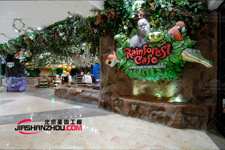 拥有水泥假山的客厅装饰设计色彩沉稳。大床是棕色的麋鹿,木箱是棕色的皮箱。这座石屋的树在窗外,屋顶是鹿角。虽然所有六边形水泥假山的结构都是一样的,但巨人花园给人一种成熟而平静的感觉。