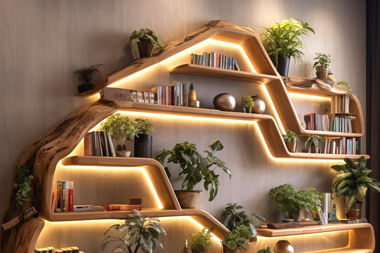 水泥仿木书架非常适合民宿的装饰与实用性陈设