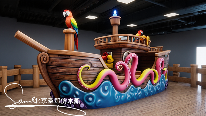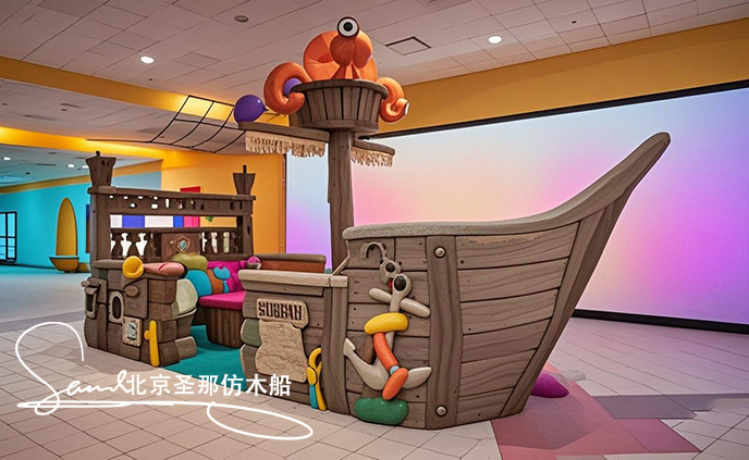 为北京蓝天幼儿园制作卡通水泥仿木船