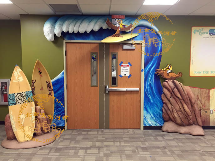用水泥仿真假山装饰的儿童滑梯和水泥直塑的海浪花使滑梯减少了很多工业化的痕迹,使小朋友的生活更贴近自然。滑梯两侧的水泥直塑仿真假山即增加了安全性又把滑梯下边作出了一个山洞,又为小朋友增加了一个游玩的项目。