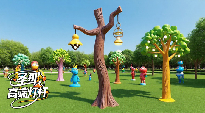 可爱又有质感的卡通灯杆,木质纹理:通过模具压制或手工雕刻,可以呈现出木纹环、木节和裂缝。您可以参考橡木、松木等木材的粗糙纹理。卡通灯杆在水泥刚刚初凝时,使用钢丝刷和木纹滚筒压出不同深度的不平整凹槽。卡通灯杆干燥后,将木质色彩的氟碳涂料(从浅棕色到深棕色的渐变色)涂在表面。对部分区域进行一些化处理(如打磨以露出原始颜色)以增强时间感。