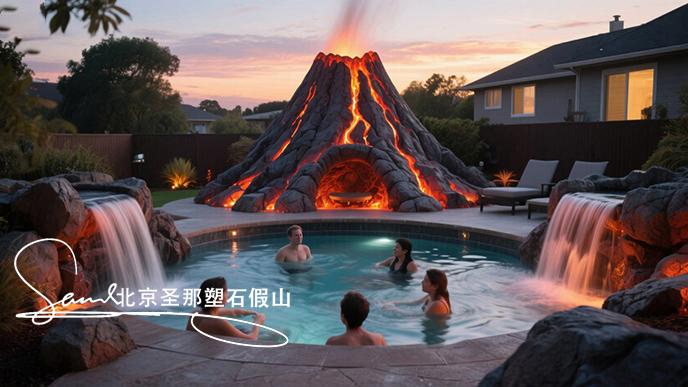为下龙湾制作仿真火山岩塑石假山施工水池