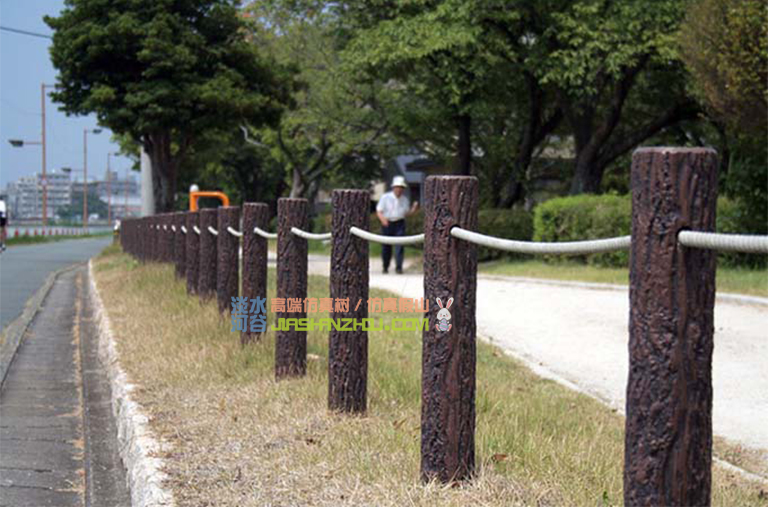 用一条铁链连接的水泥仿木栏杆我们命名为一链水泥仿木栏杆,一链水泥仿木栏杆很简单,就是把众多的水泥仿木栏杆用铁链连接到一起,起到一个警示的作用。水泥仿木栏杆不管多高或密度多大只是警示作用,再高的墙人也能爬过,水泥仿木栏杆和家中的锁一样-防君子不防小人。