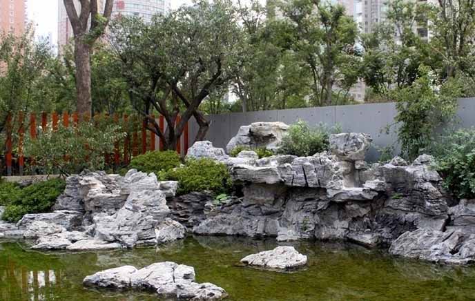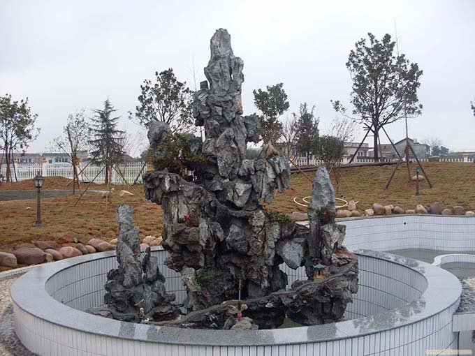 制作完成英德石假山价格怎么样,要看制作过程及制作完毕的效果,拉底石制作完毕后就开始制作叠压石,叠压石压在拉底石之上,必须错缝叠压,就是上面的石头压在两块石头的缝隙之上,以求稳固。