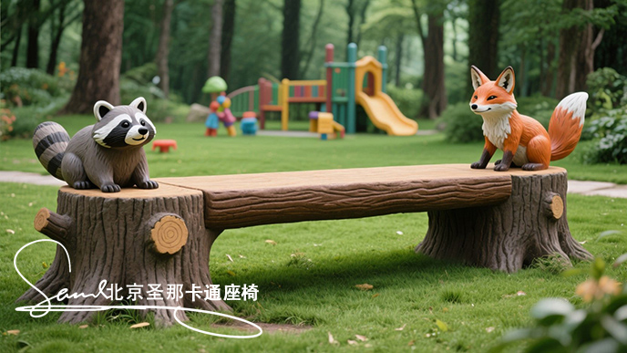 双半圆木水泥仿木坐凳使用舒适外观具美感