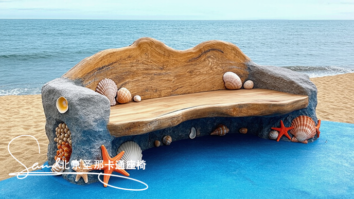 为山东日照海洋公园制作烧杉色水泥仿木坐凳