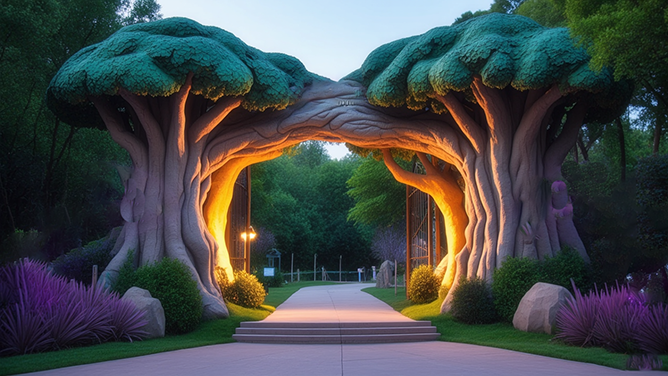 项目描述:在空旷的草原做生态园大门就像在大餐厅吃饭一样,感觉一切都是小的,为体现生态园大门的气势,就要把生态园大门做得大,除了加大树的高度、直径,另外减少了树枝树叶,使整个树形显得颇具力感。我们所要做的就是不加大生态园大门尺寸的前提下让生态园大门显得高大。